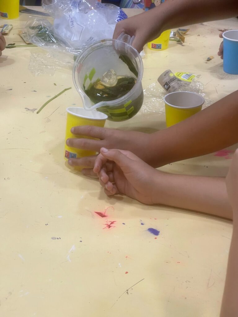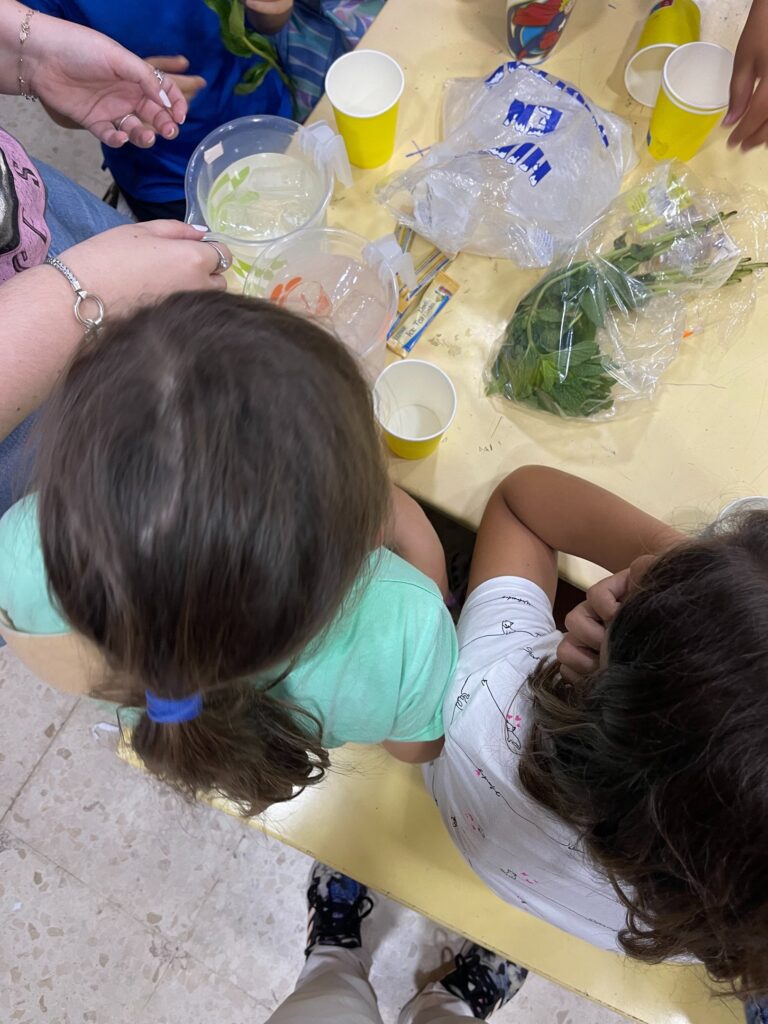 Debíamos acabar preparando dos buenas jarras de agua con hielo, hierbabuena y limón. Digo que debíamos acabar porque al final, fue como empezamos, ya que tuvimos algunos problemas técnicos con el proyector y mientras los solucionábamos Sandra les preparó sus bebidas refrescantes las cuales se tomaron con mucha ilusión, aunque algunos con cara rara ante el sabor de la hierbabuena.