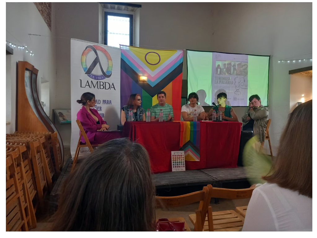 El mismo día asistimos a un interesante debate en formato de podcast «Tenemos la Palabra» en San Fernando organizado por la Asociación Lambda La Isla. Un podcast con varios representantes de la comunidad LGBT+ donde se comentaron varios temas de gran importancia para la actualidad y realidad LGBT+. Moderado por Julia Cordero Cordero tuvimos el placer de oír una mesa de debate compuesta por: Gemma Ramírez Lorido, José Alberto Cruz Romero, Alejandra Rodríguez Naranjo, Nesty Kiow-e y Manu Vela Martínez.