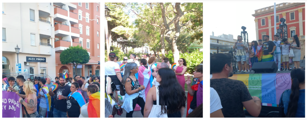 Nuevamente en San Fernando de la mano de la Asociación Lambda La Isla asistimos la manifestación que organizaron el día 3 de julio. Una manifestación que avanzó sin miedo por las calles de San Fernando haciéndose notar con cánticos reivindicativos que ensalzaban la lucha y la defensa de los derechos. Pudimos observar mucho amor, cariño, apoyo de amigos y familiares, un gran sentimiento de cercanía y un amplio aspecto de edades y una gran variedad de personas muy diferentes entre ellas, unidas por la defensa de aquellos mas vulnerables.